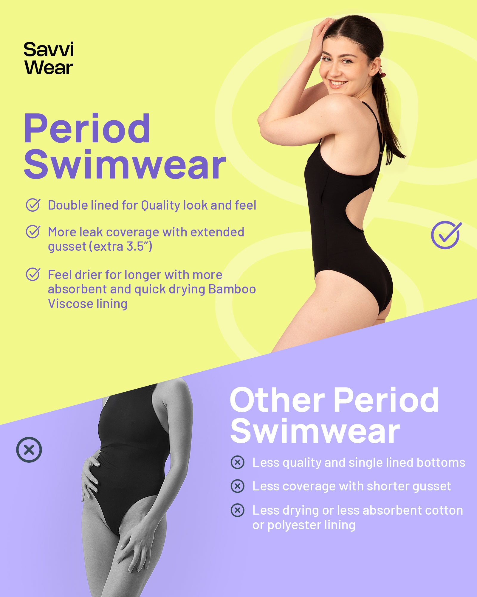 • Protect the planet and your wallet with a reusable, washable period swim solution